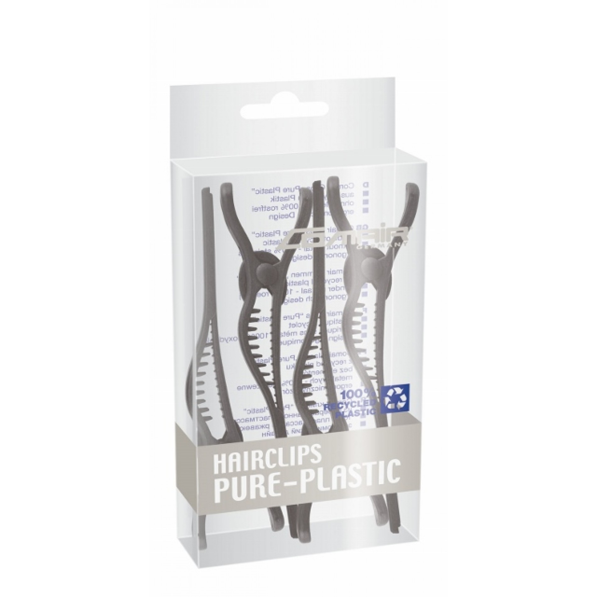 Φτιαγμένο από ανακυκλωμένο πλαστικό, δεν περιέχει μέταλλα. 100% μη-διαβρωτικό, οικονομικό σχέδιο. Η καμπύλη εμποδίζει τα μαλλιά να γλιστρίσουν από το κλιπ.